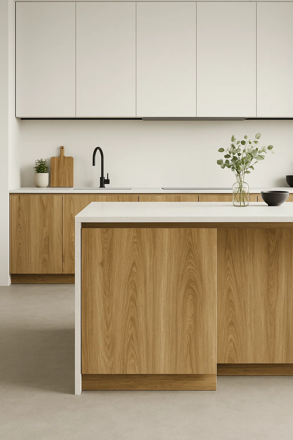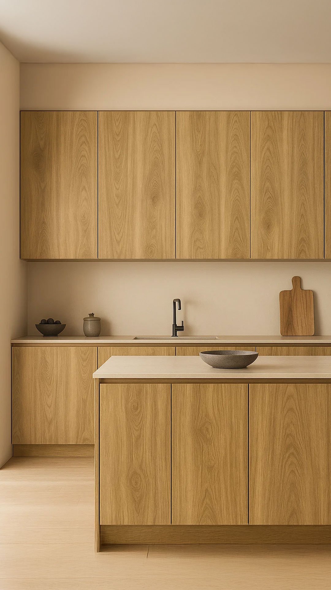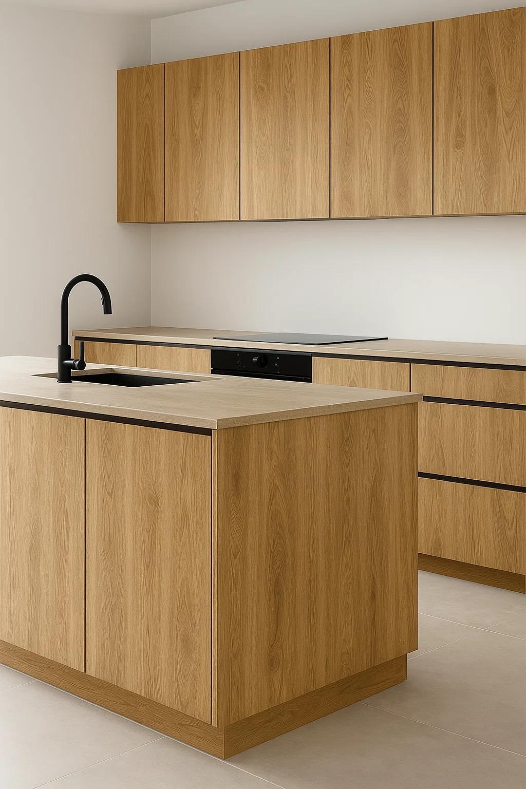 Engineered wood with a warm natural tone, combining classic wood grain patterns with a modern texture — delivering elegance and warmth for contemporary kitchens and furniture.