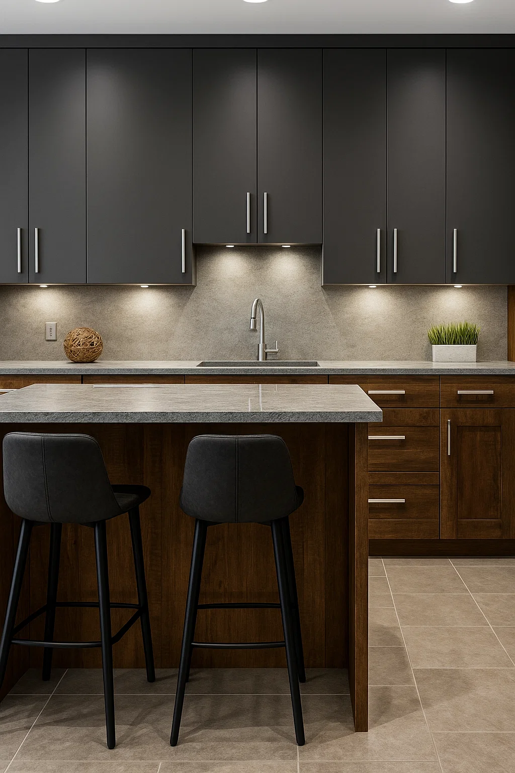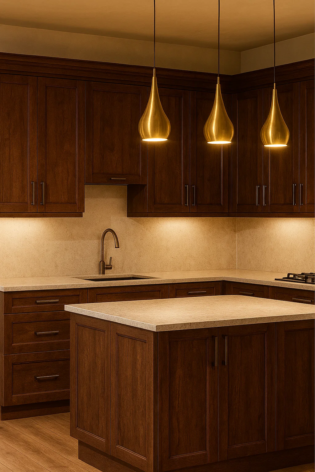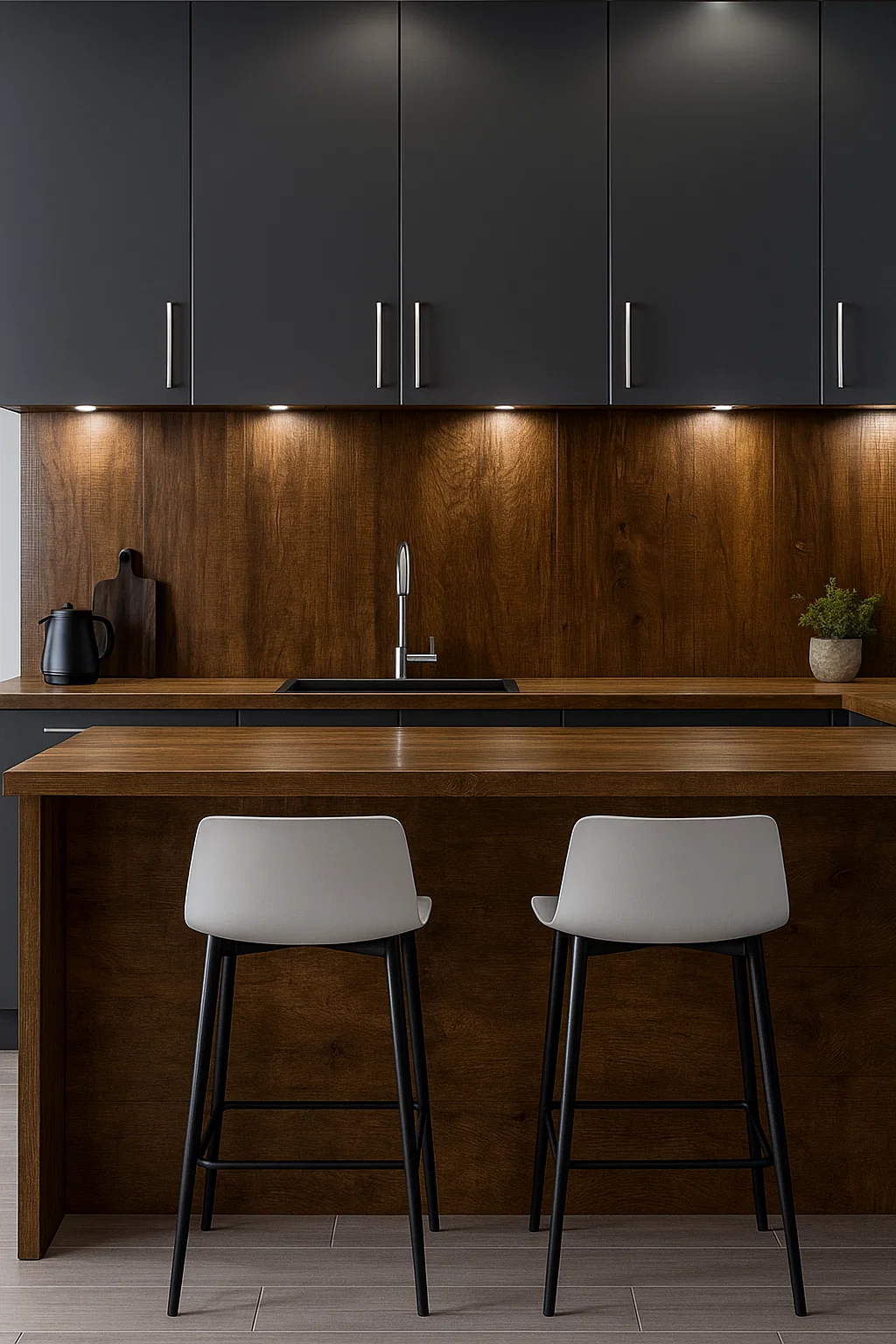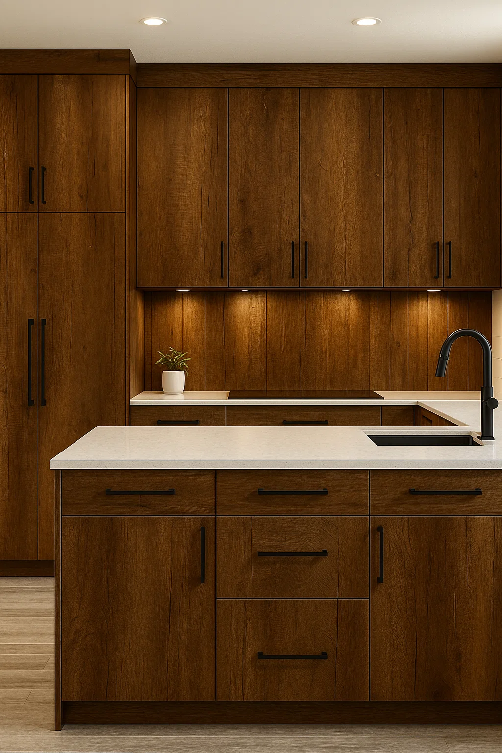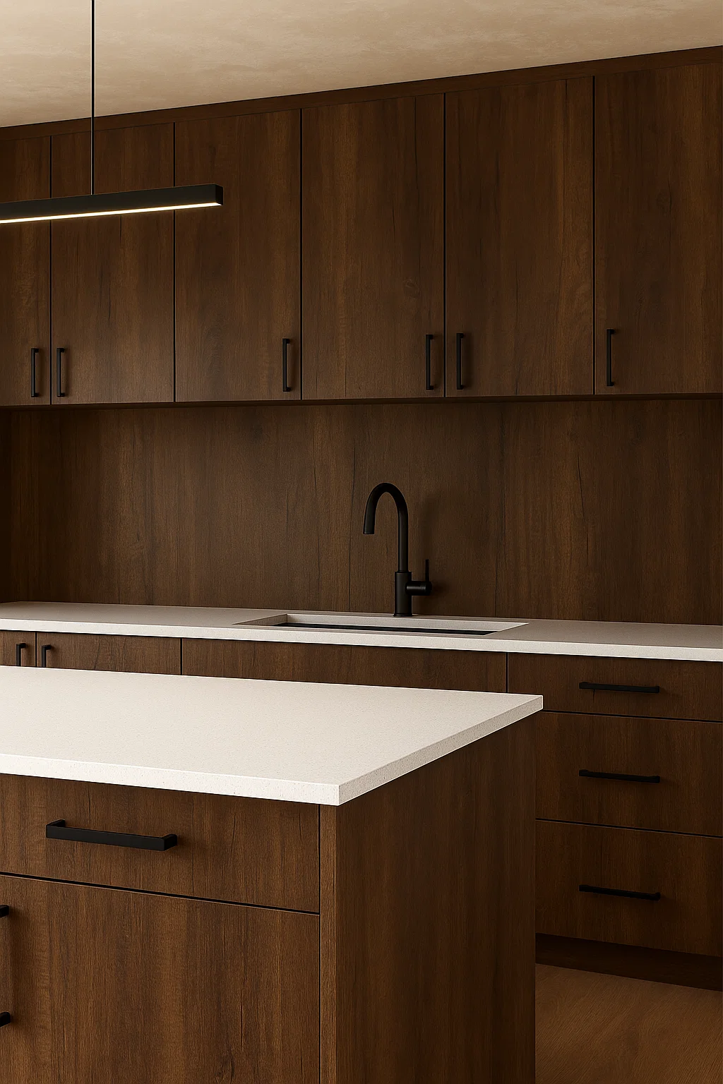 A rich dark brown wood tone with natural grains, bringing a luxurious and warm touch to modern kitchens. Perfect for contemporary designs that seek elegance, distinction, and authentic warmth.