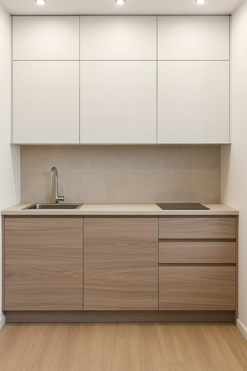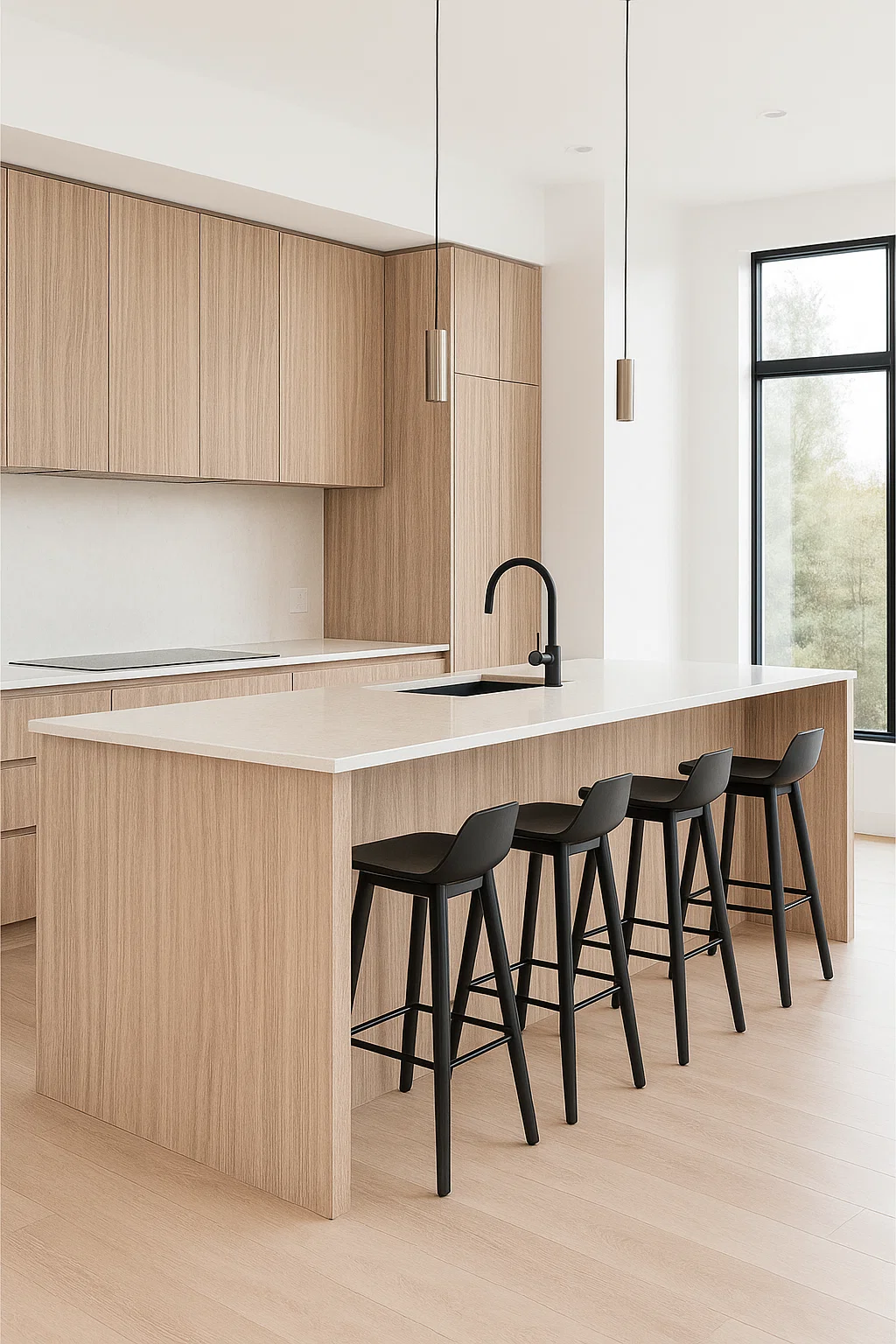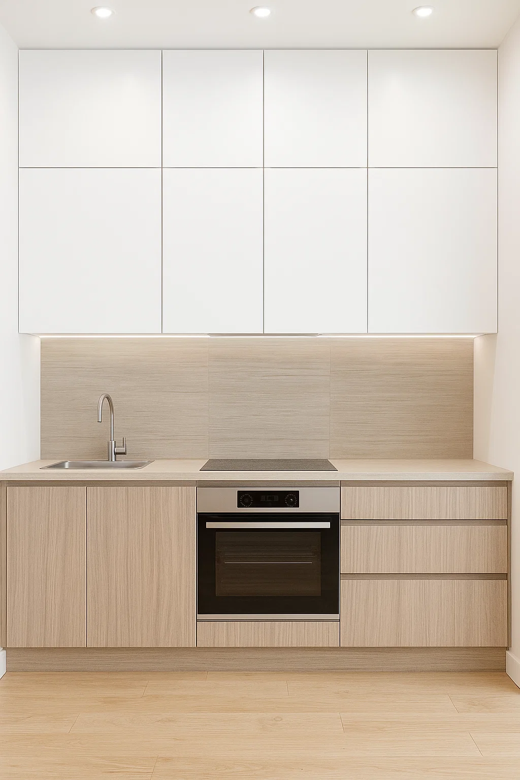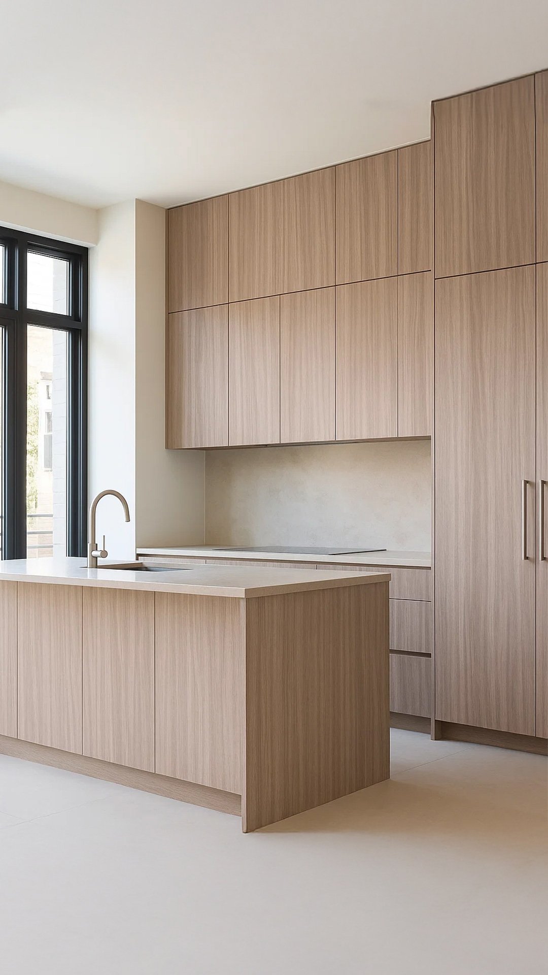 A light elegant wood with soft natural grains, bringing spaciousness and serenity to modern kitchens with a refined touch.