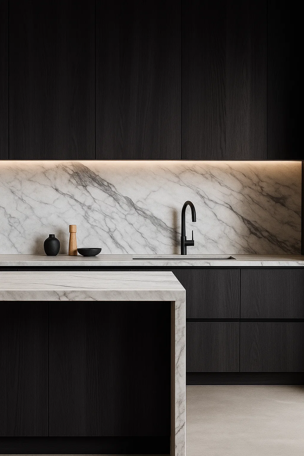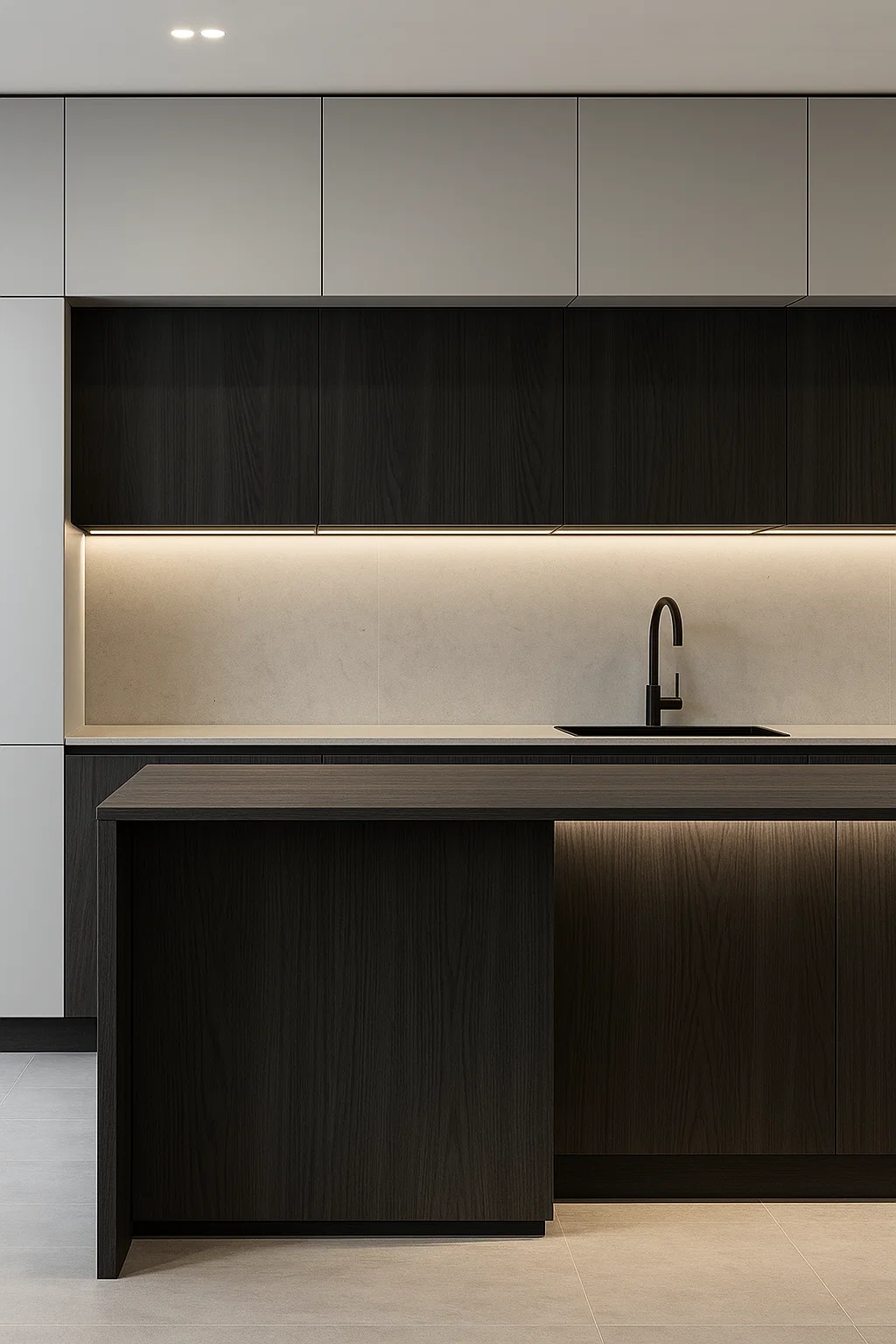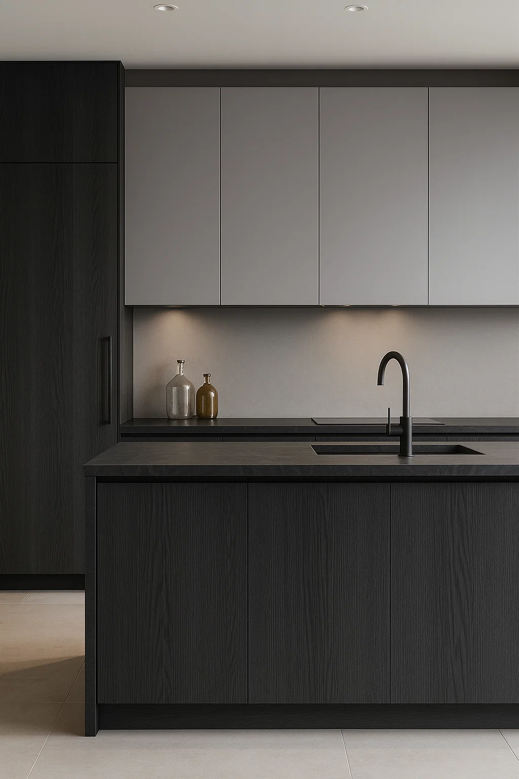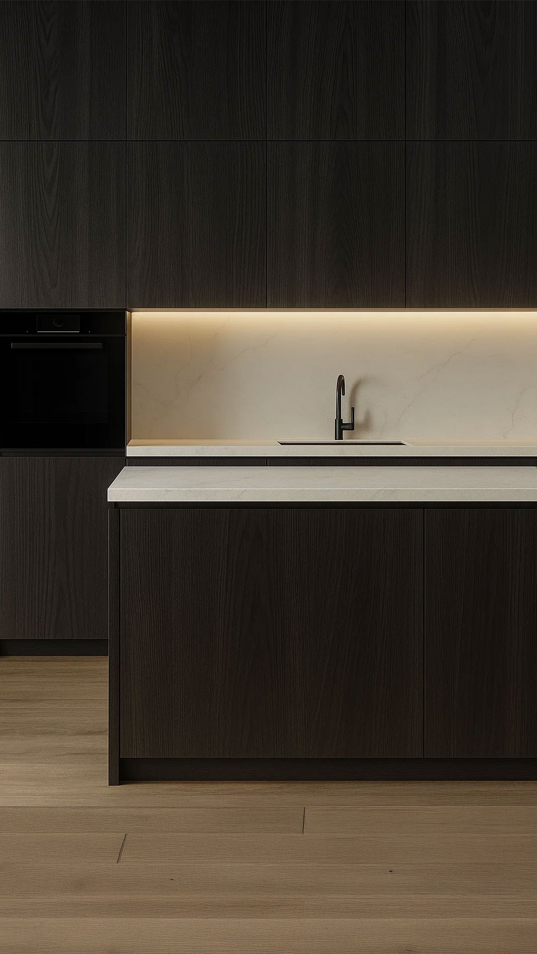 Engineered wood in a refined dark tone with subtle natural grain, delivering a modern, sophisticated look — perfect for luxurious kitchens and contemporary furniture.